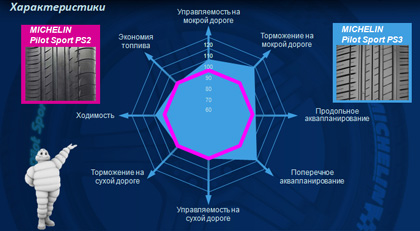 шинах 245/40ZR18 Y. По сравнению с шиной MICHELIN Pilot Sport PS2.